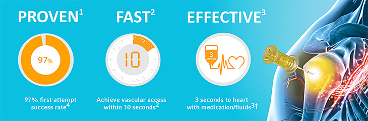 השגת גישה ורידית מרכזית בתוך שניות בודדות.